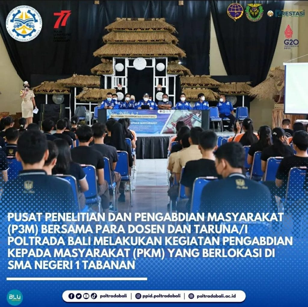 Politeknik Transportasi Darat Bali melalui Pusat Penelitian dan Pengabdian Masyarakat (P3M) bersama para dosen dan Taruna/i melakukan Kegiatan Pengabdian Kepada Masyarakat (PKM) yang berlokasi di SMA Negeri 1 Tabanan.