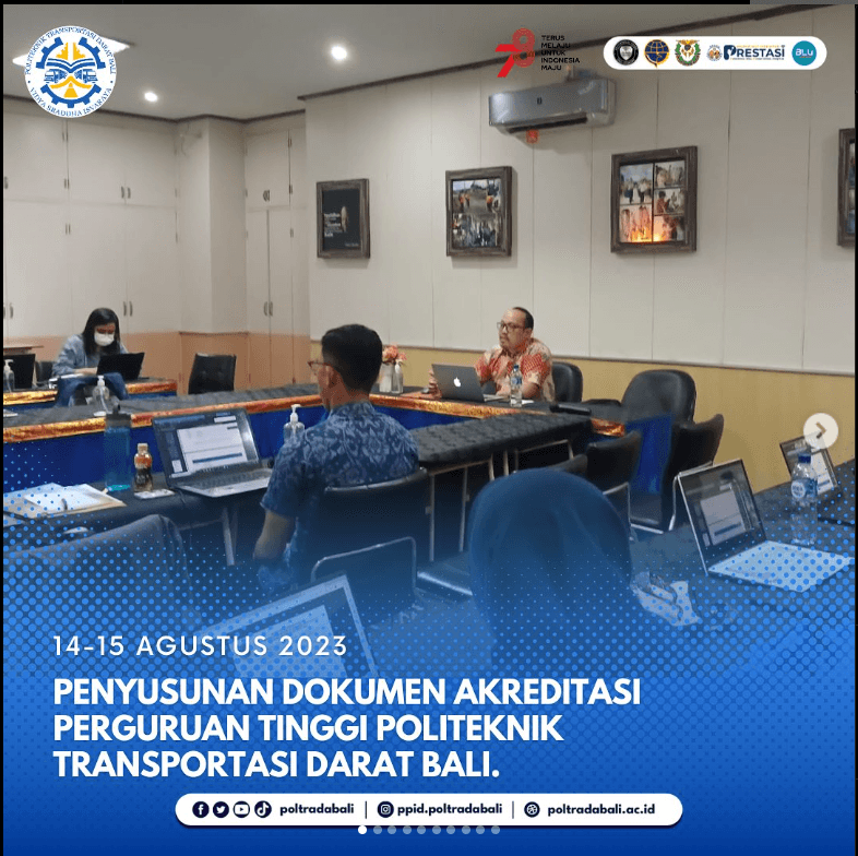 Kegitan dibuka langsung oleh Direktur Poltrada Bali dan telah berlangsung selama 2 (dua) hari pada 14-15 Agustus di Kampus Tabanan dan Gianyar- Bali dengan melibatkan seluruh TIM Penyusun Dokumen Akreditasi Perguruan Tinggi Politeknik Transportasi Darat Bali.