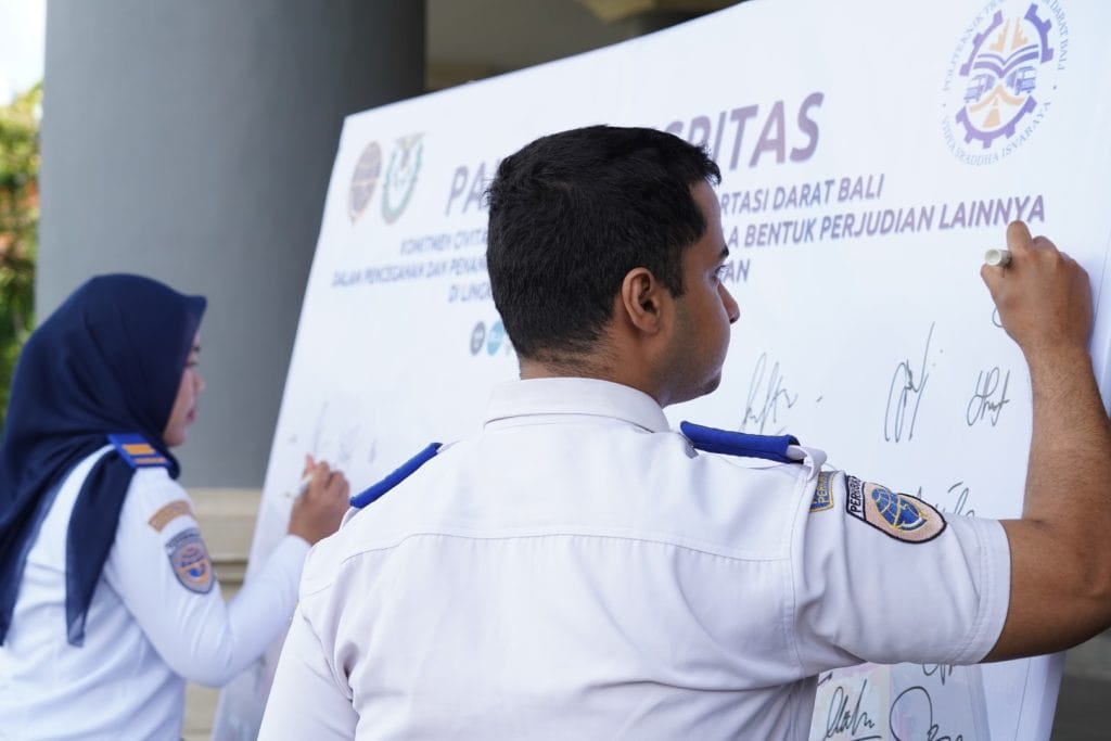 Apel bersama ini diakhiri dengan penandatanganan pakta integritas sebagai wujud komitmen kita bersama dalam pencegahan dan penanggulangan judi online di Lingkungan Kementerian Perhubungan terutama di Politeknik Transportasi Darat Bali.