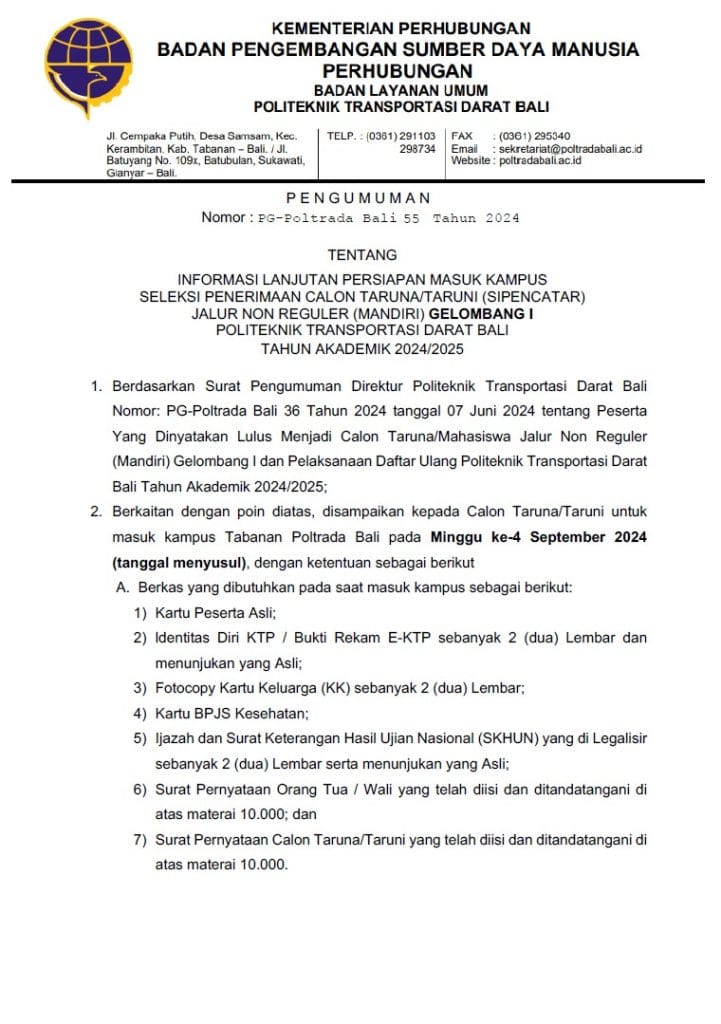 PENGUMUMAN TENTANG INFORMASI LANJUTAN PERSIAPAN MASUK KAMPUS – JALUR MANDIRI GELOMBANG I PENGUMUMAN BISA DIUNDUH DISINI Artikel Dibaca : 1,257