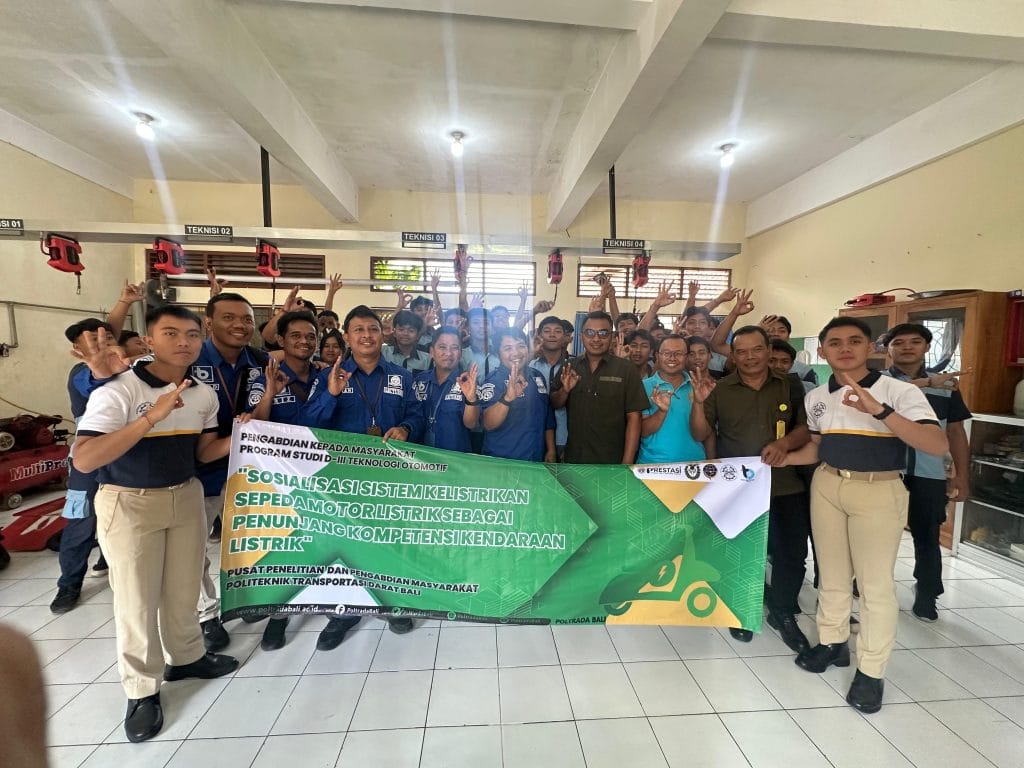 Tegalalang, 18 Oktober 2024 – Politeknik Transportasi Darat Bali menggelar kegiatan Pengabdian kepada Masyarakat (PkM) di SMKN 1 Tegallalang dengan tema “Sosialisasi Sistem Kelistrikan Sepeda Motor Listrik Sebagai Penunjang Kompetensi Kendaraan Listrik.” Kegiatan ini bertujuan untuk meningkatkan pemahaman siswa-siswi mengenai teknologi sepeda motor listrik, serta memperkenalkan mereka pada sistem kelistrikan yang menjadi dasar dari kendaraan listrik modern.