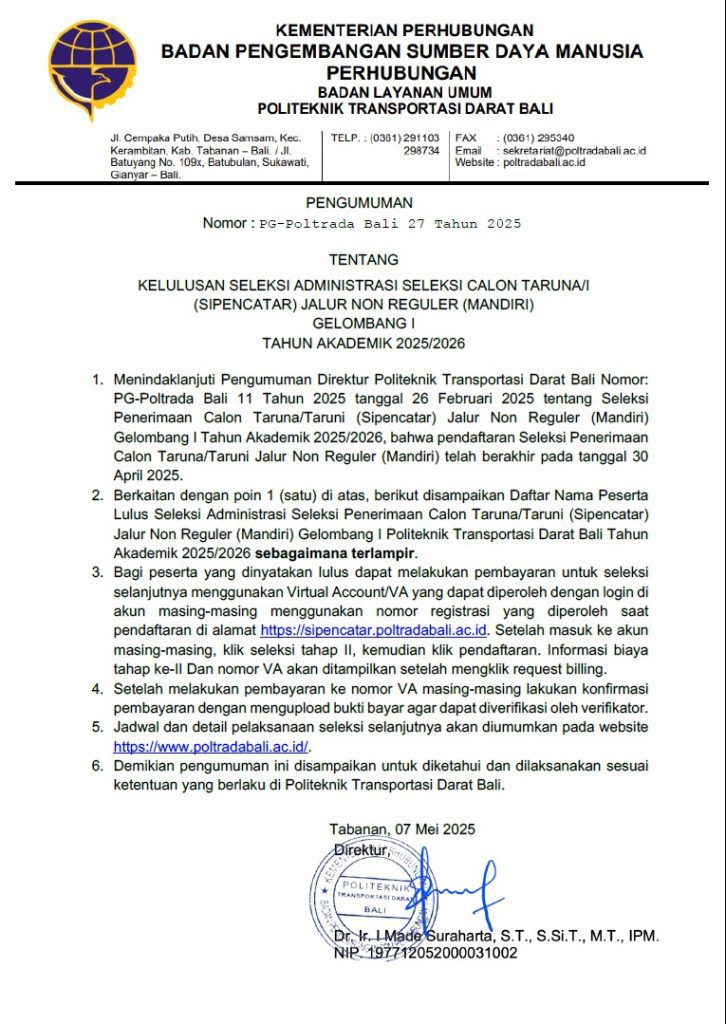 🔗 Info lebih lanjut klik tautan pada bio profil @poltradabali.official