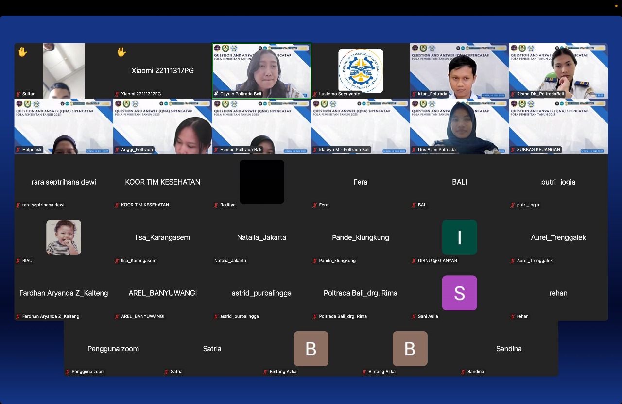Kegiatan ini dilaksanakan dalam dua format, yakni secara offline di Kampus POLTRADA Bali Tabanan pukul 08.30–12.00 WITA, serta online melalui Zoom Meeting pada pukul 15.00–16.00 WITA. Antusiasme peserta sangat tinggi baik dari kalangan pelajar, guru, maupun orang tua yang ingin mengetahui lebih dalam terkait proses pendaftaran dan tahapan seleksi Sipencatar Jalur Pola Pembibitan tahun 2025.