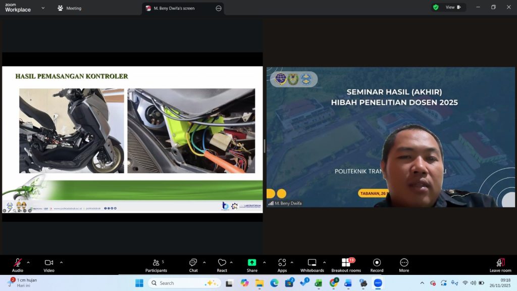 Tabanan, 26 November 2025 – Politeknik Transportasi Darat (Poltrada) Bali kembali menyelenggarakan Seminar Hasil Hibah Penelitian Dosen pada tahun 2025 dengan suasana yang penuh semangat dan profesional. Kegiatan yang berlangsung pada 26 November 2025 ini dilaksanakan di Kampus Tabanan Poltrada Bali dan dibuka secara resmi oleh Wakil Direktur I Poltrada Bali, Ir. Aris Budi Sulistyo, S.T., M.T.