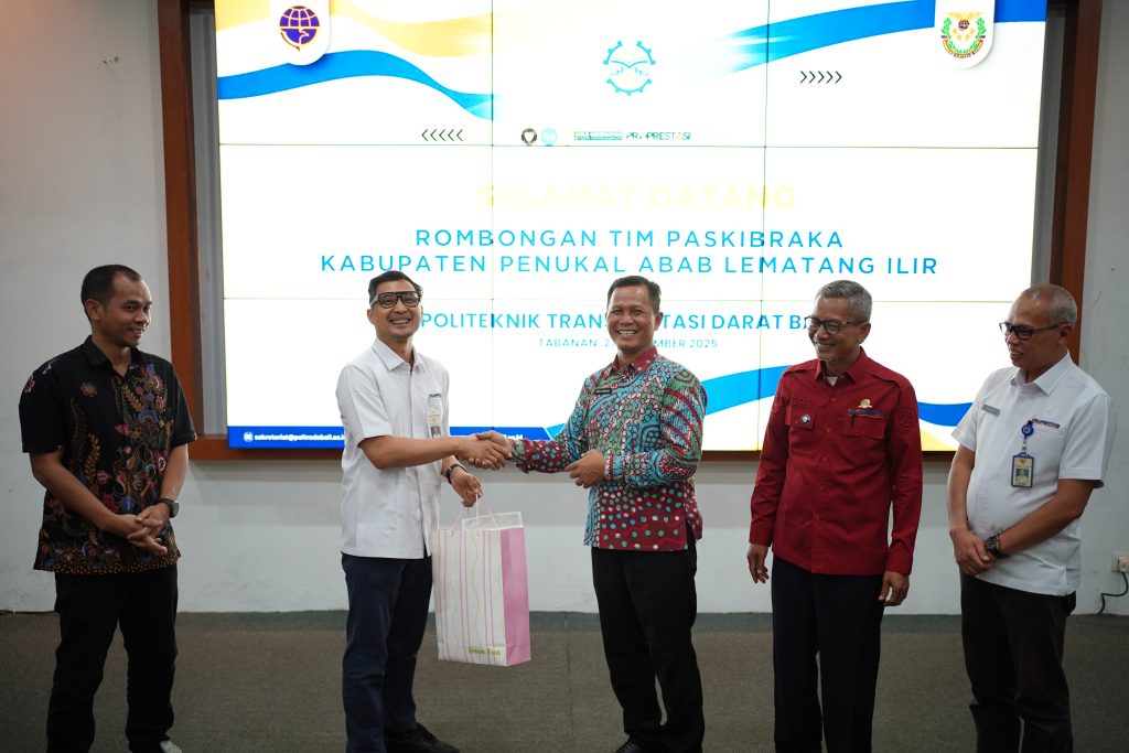 Tabanan, 27 November 2025 – Politeknik Transportasi Darat Bali (Poltrada Bali) melaksanakan kegiatan kunjungan dan Pengabdian kepada Masyarakat (PkM) bersama Pasukan Pengibar Bendera Pusaka (Paskibraka) Kabupaten Penukal Abab Lematang Ilir (PALI) Tahun 2025. Kegiatan yang mengangkat tema “Membangun Karakter Berbangsa melalui Gerakan Pelajar Pelopor Lalu Lintas” ini menjadi salah satu bentuk penguatan nilai disiplin, nasionalisme, dan keselamatan berlalu lintas bagi generasi muda.