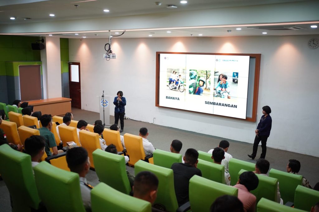 Pada sesi selanjutnya, materi keselamatan berlalu lintas disampaikan oleh Mahasiswa Poltrada Bali yang tergabung dalam Safety Warrior Poltrada Bali Tahun 2025. Mereka memberikan penjelasan mengenai etika berlalu lintas, pentingnya kepeloporan pelajar dalam keselamatan jalan, serta langkah-langkah sederhana untuk mengurangi risiko kecelakaan di lingkungan sekitar. Materi disajikan secara komunikatif, interaktif, dan mudah dipahami sehingga peserta dapat mengikuti dengan antusias.