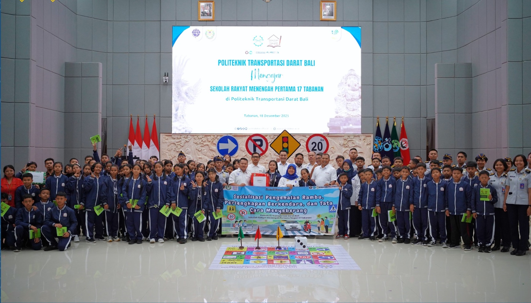 Tabanan, 18 Desember 2025– Politeknik Transportasi Darat Bali (Poltrada Bali) melaksanakan kegiatan Poltrada Bali Mengajar di Sekolah Rakyat Menengah Pertama (SRMP) 17 Tabanan sebagai bentuk dukungan terhadap Program Sekolah Rakyat serta penguatan karakter peserta didik, pada Kamis, 18 Desember 2025, bertempat di Kampus Poltrada Bali, Tabanan.