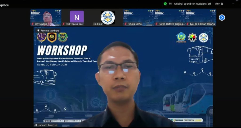 Diawali dengan Welcome Remarks oleh Dr. Hananto Prakoso, Kepala Pusat Pengembangan SDM Perhubungan Darat, yang menyampaikan pentingnya sinergi antar-lembaga dalam meningkatkan kualitas layanan terminal. Dalam sambutannya, Dr. Hananto menegaskan bahwa terminal yang modern, aman, dan nyaman adalah cerminan dari sistem transportasi darat yang maju dan terintegrasi.