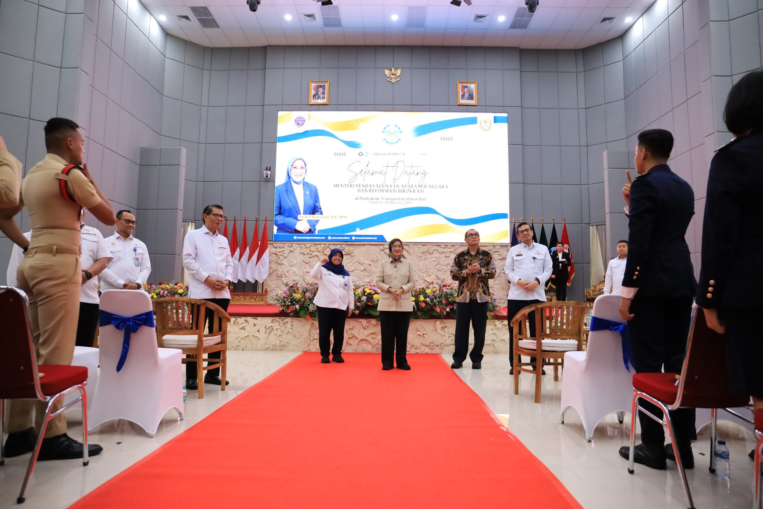 Acara diawali dengan welcome speech dari Direktur Poltrada Bali, Ibu Firga Ariani, SE, M.M.Tr. yang menyampaikan apresiasi atas ilmu luar biasa yang diberikan oleh narasumber kepada Politeknik Transportasi Darat Bali. Kemudian dilanjutkan dengan keynote speech dari Kepala Pusat Pengembangan SDM Perhubungan Darat, Bapak Bambang Siswoyo, S.T., M.T.