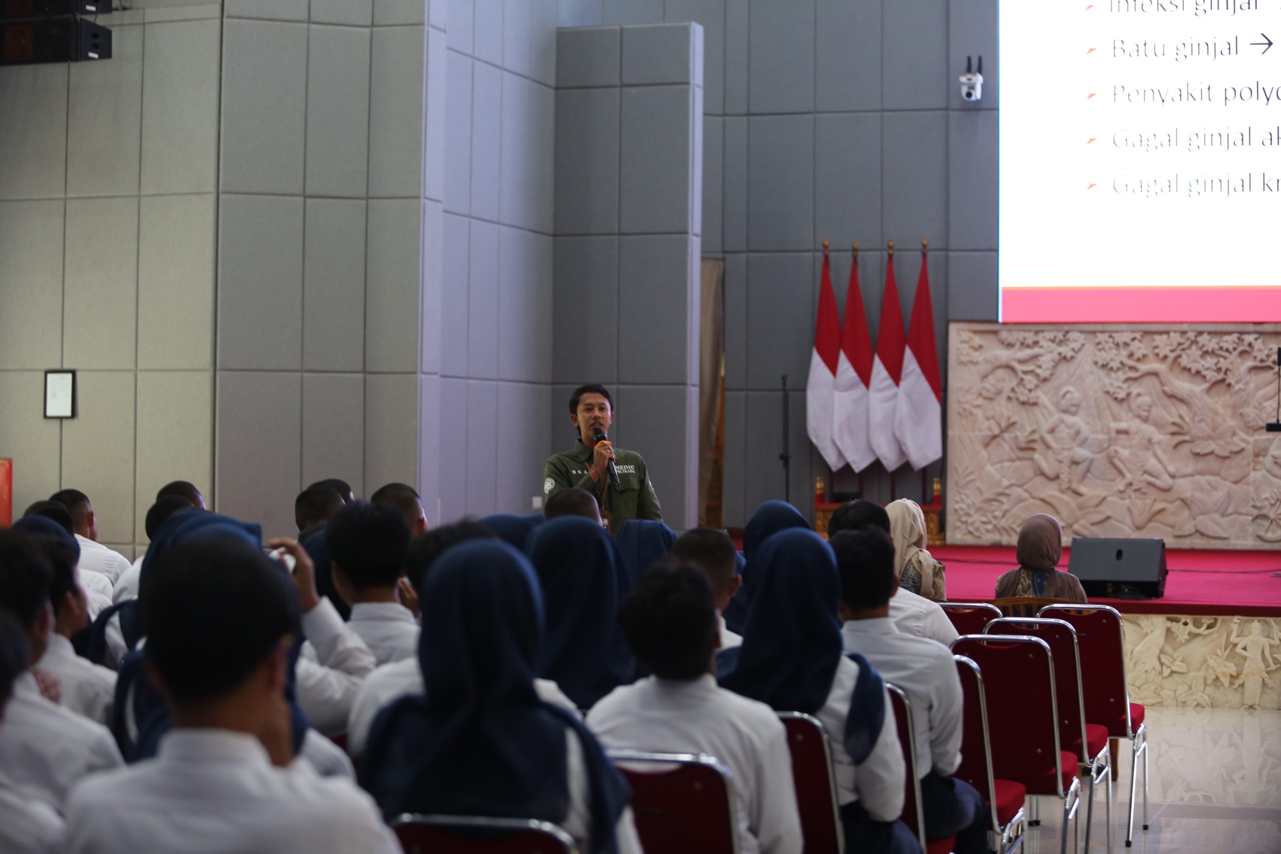 Kegiatan penyuluhan berlangsung dengan tertib dan interaktif. Mahasiswa/i terlihat antusias mengikuti seluruh rangkaian acara, khususnya pada sesi tanya jawab yang membahas kebiasaan sehari-hari yang sering dilakukan tanpa disadari dapat berdampak buruk bagi kesehatan ginjal.