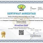 Selamat ditujukan kepada Program Studi Manajemen Transportasi Jalan Program Diploma-III Politeknik Transportasi Darat Bali telah berhasil memperoleh Predikat Akreditasi BAIK setelah menjalani beberapa rangkaian proses akreditasi dan asesmen lapangan dari BAN PT, berdasarkan keputusan Badan Akreditasi Nasional Perguruan Tinggi (BAN-PT) No. 5984/SK/BAN-PT/Ak/D3/IX/2022 tanggal 7 September 2022 tentang Peringkat Akreditasi Program Studi Manajemen Transportasi Jalan pada Program Diploma-III Politeknik Transportasi Darat Bali. Peringkat akreditasi ini berlaku sejak tanggal 7 September 2022 sampai dengan 7 September 2027.