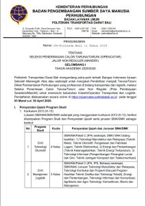 Pada tahun 2019 dengan diterbitkannya Peraturan Menteri Perhubungan Republik Indonesia, dengan Nomor PM 30 tahun 2019 pada tanggal 10 Mei 2019 tentang Organisasi dan Tata Kerja Politeknik Transportasi Darat Bali. maka Balai Pendidikan dan Pelatihan Transpormasi Darat Bali berubah nomenklatur menjadi Politeknik Transportasi Darat Bali (POLTRADA Bali).