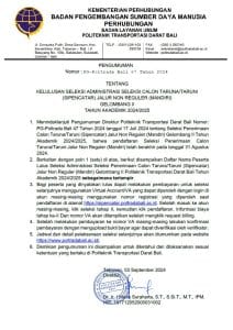 Pada tahun 2019 dengan diterbitkannya Peraturan Menteri Perhubungan Republik Indonesia, dengan Nomor PM 30 tahun 2019 pada tanggal 10 Mei 2019 tentang Organisasi dan Tata Kerja Politeknik Transportasi Darat Bali. maka Balai Pendidikan dan Pelatihan Transpormasi Darat Bali berubah nomenklatur menjadi Politeknik Transportasi Darat Bali (POLTRADA Bali).